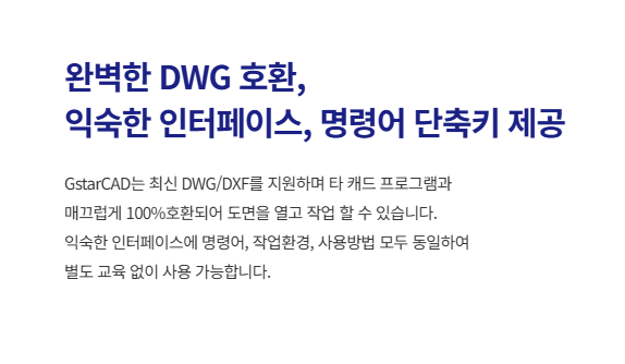 지스타캐드(GstarCAD)는 독자 개발 엔진으로 오토캐드와 완벽한 호환성 및 최고의 속도를 자랑합니다.